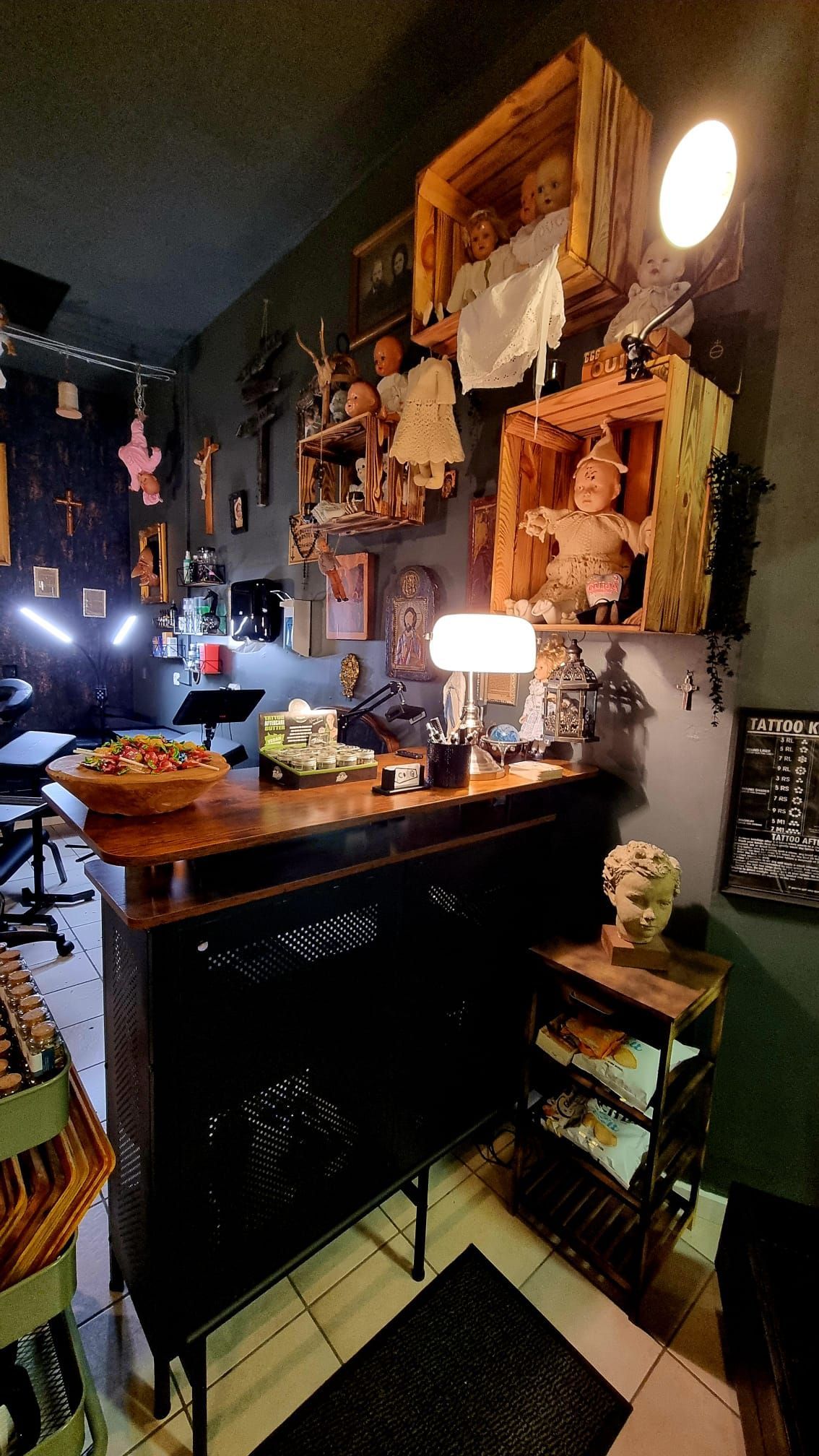 Inmitten von unheimlichen Dekor und mystischer Stille erschaffen wir Kunstwerke, die unter die Haut gehen. In dieser einzigartigen Atmosphäre wird dein Tattoo zu einem persönlichen Meilenstein.